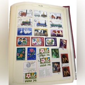 Beautiful collection of Polish stamps in an album. Features various designs and themes.