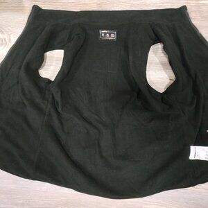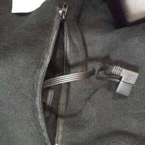 Zip up, with front pockets for your hands (right next to the heating pads)