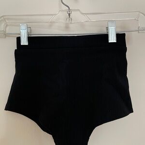 Black ribbed high waisted pole dancing booty shorts. Unworn with tags. Ruched bum! Best fits XS or 24-25inch waist.