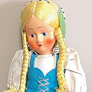 Type: This is a vintage folk doll, often referred to as a "costume doll" or "souvenir doll," created to represent a specific region or culture. They were traditionally handmade, but some were also mass-produced in factories for the tourist trade.