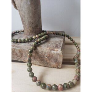 .Vintage Japser Polished Gemstone Necklace. perfect for him her or they. Mostly green with additional colours of orange and lighter green.