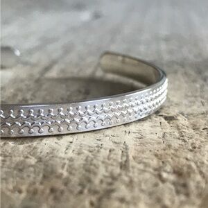 This sterling silver crown cuff bracelet is hand forged from heavy gauge silver, then polished to a high shine. A great open cuff bracelet that is slightly adjustable and can be worn alone, or stacked with other bracelets to achieve your rustic bohemian look.