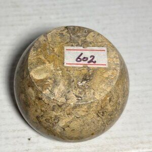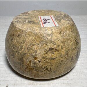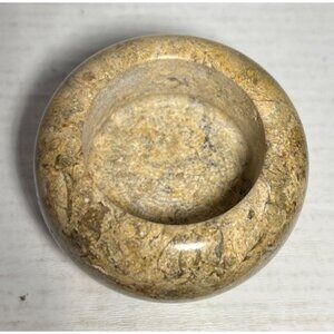 This marble tealight holder adds elegance to any setting with its polished finish and natural fossil patterns. A functional and decorative accent.