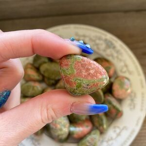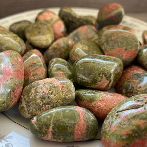 Unakite is said to be a stone of vision, opening the third eye and useful for scrying. It is also believed to be a stone of balance, grounding the self while bringing emotions and spirituality together. Among crystal healing practitioners, unakite is used to support convalescence from illness.