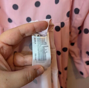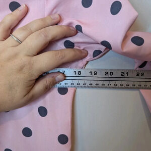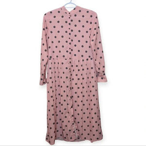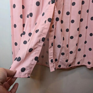 Polka Dot Dress Ascot Neck Tie Bow Pink Black Full Button Down Midi Length Small