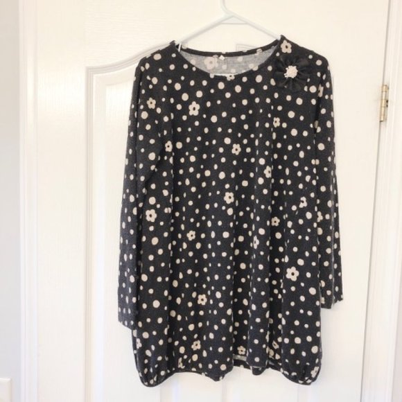 ✿ Polka Dot Flower Dress Black Dress (Large)