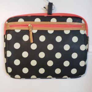Polka Dot Laptop Sleeve tablet front pocket zippered black white pink+