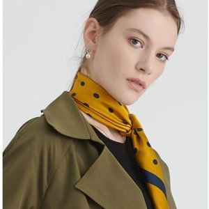 Polka Dot Silk Scarf 100% Silk Glossy, sophisticated knitting, easy to care. Size: 25 inches x 25 inches Colors: dark yellow a dark blue Hand wash or machine wash in the mesh wash bag Labels and tags have been removed. *Smoke-free/Pet-free*
