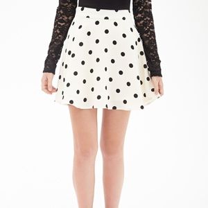 Keep things casual for the day in this white and black polka dot skater skirt.