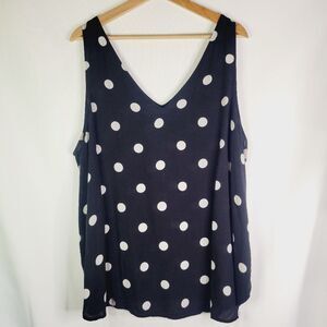 Chic and stylish sleeveless top featuring a classic polka dot pattern. Perfect for casual outings or a day at the office. Enjoy the comfort and elegance of this black and white design. Rayon fabric cool to the touch and lightweight.
