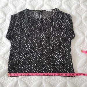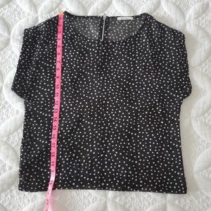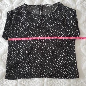 Lightweight sheer polka dot black and white short sleeve blouse.