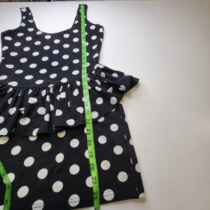 Polka dot Black and White Peplum-Style Mini Dress Size M