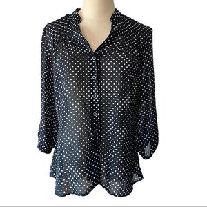 Polka dot short sleeved lightweight polka dot blouse. Lightweight and flowy, elastic cuffs on sleeves. Very cute and comfortable!