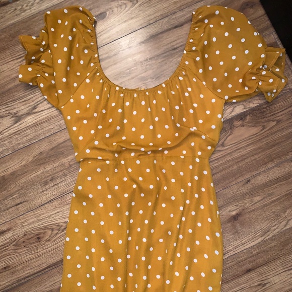 Yellow dress with white polkadots. Fits very small so tag says L however fits more like a S/XS. Never worn
