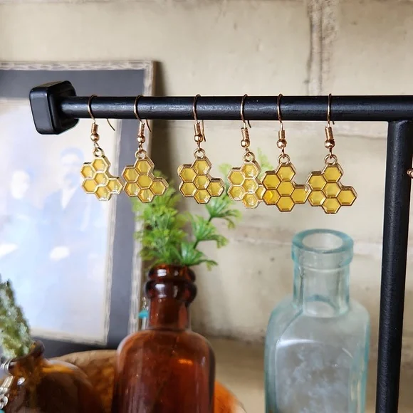 honeycomb or bee earrings on faux gold hook