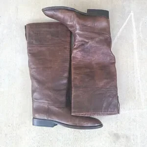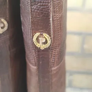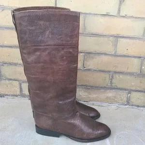 Chic knee-high boots. Textured Python leather design.