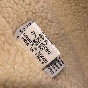Classic looking Italian leather jacket, by Pollini. Size 42. Arm length 23.5 inches. Imitation sheepskin lining (polyester). In nice condition. Patch pockets. Has had modest wear and still years of wear left. All original buttons. Only defect is small hole at right armhole seam, an easy and inexpensive repair.