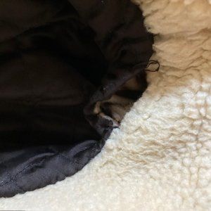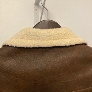 Pollini Women's Italian brown leather jacket size 42/10 US faux sheepskin lining