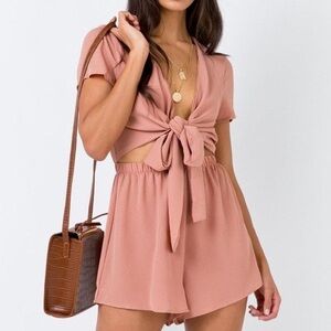 Stylish pink romper with a tie-front design. Perfect for casual outings. Size 10 fits like a medium. New without tags.
