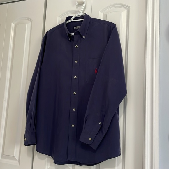 Polo Button down. Navy with cream buttons. Size M. Gorgeous soft fabric which doesn’t wrinkle. Washes like a dream! Not sure on brand authenticity but is a great quality shirt regardless!!