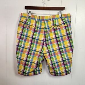 Polo Golf Ralph Lauren Links Plaid Yellow Shorts Mens Size 36 Cotton Golfing