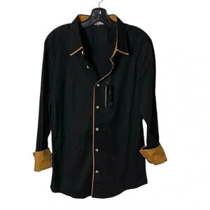 Polo Mano men shirt,small,Eco friendly,Black,trim , tan,two tone,cotton,classy