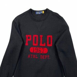 Polo Ralph Laure 67 Raised Felt Logo Black Pullover Sweatshirt Men's XS X-Small