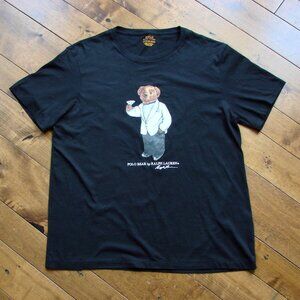 Polo Ralph Lauren Black Tee Shirt Tuxedo Martini Bear ~ Size XL ~ no fabric tag but others online indicate 100% Cotton
