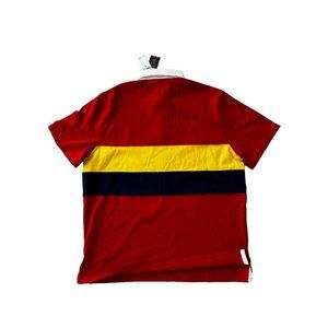 Bold, wide stripes orbit this sporty rugby polo outfitted with a classic optic-white collar and logo embroidery at the chest.