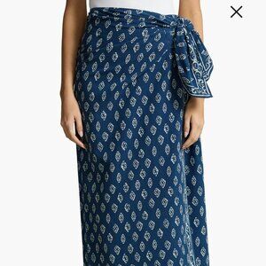 Polo Ralph Lauren Cotton Wrap Maxi Skirt, Navy/Bell Floral.