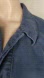 Medium dusty blue, intentional/manufactured distressing and mending/patching, right side button front closures, chest pockets, d-ring belt, adjustable button position at wrist and ankle, hip pockets, unlined. Freshly laundered.
