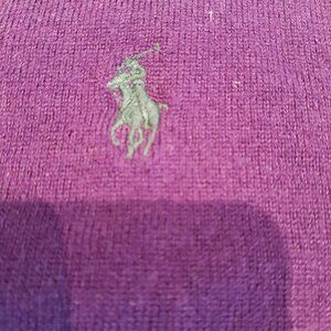 100% Wool sweater from Polo. Really nice rich purple. The sweater is in great condition. No notable flaws.
