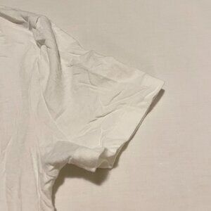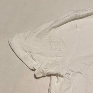 This shirt is a fitted small. It is pre-owned and in used condition. It has wrinkled due to storage. Please see all photos for exact item.