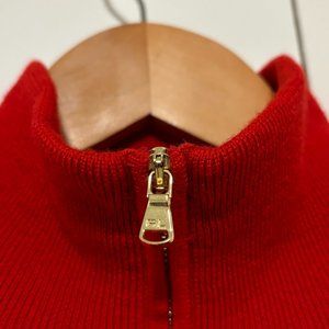 Polo Ralph Lauren Golf Red Quarter-Zip Wool Sweater with Shoulder pads - Medium