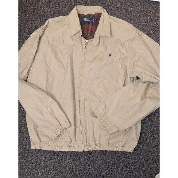 Polo Ralph Lauren Harrington Jacket Mens XL Khaki Beige Plaid Lined Pony Logo
