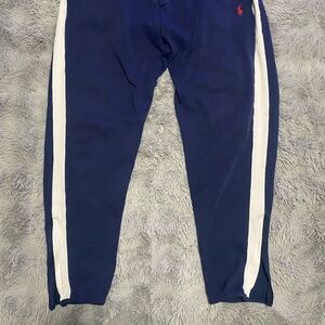 Stay stylish and comfortable with these Polo Ralph Lauren Interlock Track Pants in a vibrant blue hue. Made for teens in size XL, these regular fit joggers feature the iconic Ralph Lauren Polo logo, adding a touch of classic charm to your casual look. Ideal for everyday wear, these pants are perfect for lounging at home or running errands in style. Upgrade your wardrobe with these trendy and versatile track pants, perfect for any casual occasion. Made from high-quality materials, these pants combine fashion and function effortlessly, making them a must-have addition to your clothing collection. Perfect for teens who appreciate both comfort and style, these Polo Ralph Lauren pants are sure to become a favorite go-to piece for any outfit. (Tag size is really faded. Says XL but I believe its a youth XL)