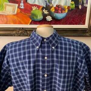Polo Ralph Lauren Men’s Blake L Shirt Checkered Dark and Light Blue Button Down Short Sleeves