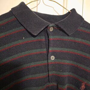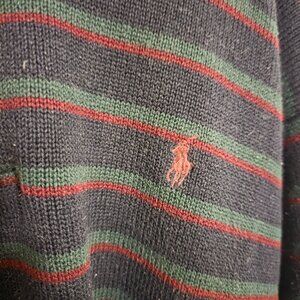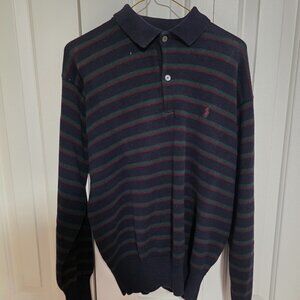 Polo Ralph Lauren Men's Medium Black/Red/Green Striped Long Sleeve Polo