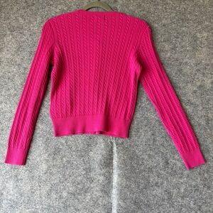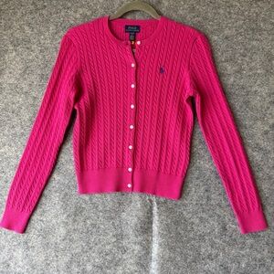 Polo Ralph Lauren Pink Cable Knit Cardigan Size L (12–14) Cotton Logo Sweater