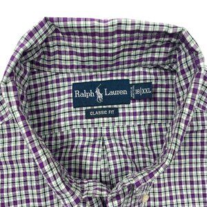 Polo Ralph Lauren Purple Plaid Button Long Sleeve 2XL Cotton Shirt Men's XXL
