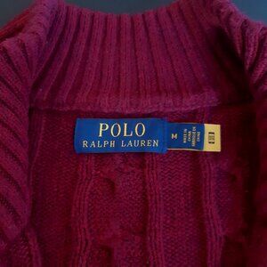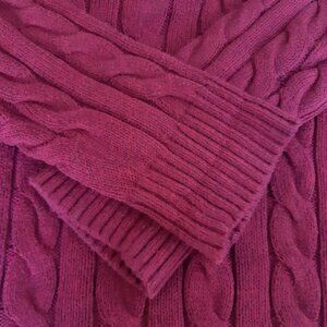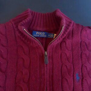 Polo Ralph Lauren SZ M Wine Red Cable Knit,100% Cotton 1/4 Zip Mock Neck Sweater