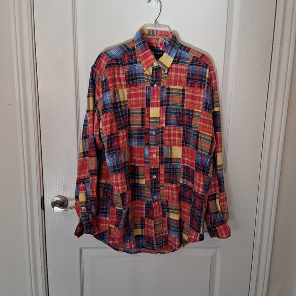 Polo Ralph Lauren Shirt Men's Size Medium Patchwork Plaid Classic Fit Work shirt