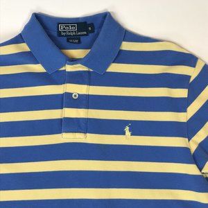Polo Ralph Lauren Short Sleeve Shirt Mens SM Blue Yellow Striped 2 Button Collar
