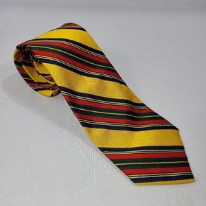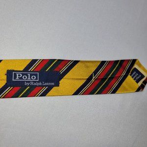 Polo Ralph Lauren Vintage Tie Yellow Red Stripe Pattern Silk Hand Made Italy