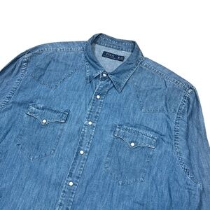 Polo Ralph Lauren Western Pearl Snap Button Denim L/S Shirt Mens 2XB