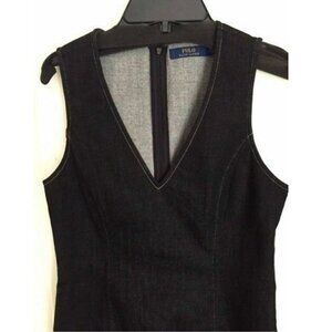 Polo Ralph Lauren Womens 2 Sheath Dress Black V Neck Sleeveless Stretch Denim