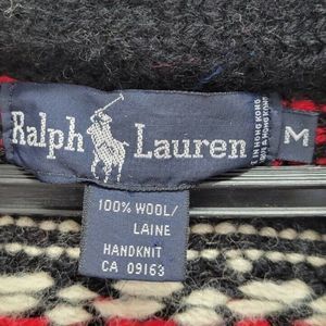 Polo Ralph Lauren Wool Vest Knitted Aztec Argyle Black/Red Button Up Size Medium