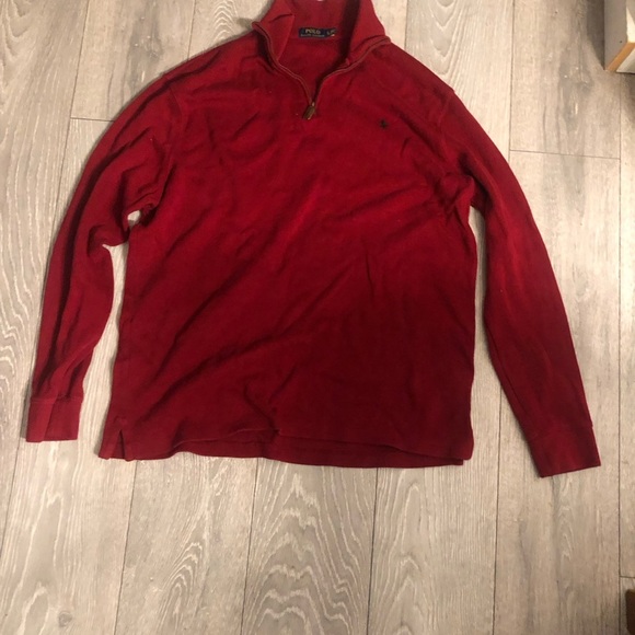 Classic red zip-up sweater by Polo Ralph Lauren. Perfect for layering. Comfortable and stylish.