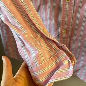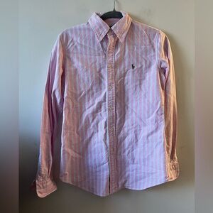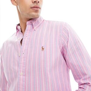 Polo Ralph Lauren icon logo stripe lightweight oxford shirt in pink/blue
