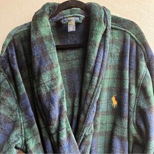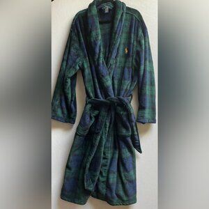Polo Ralph Lauren microfiber soft Green and Blue Plaid Housecoat Robe Sz L/XL